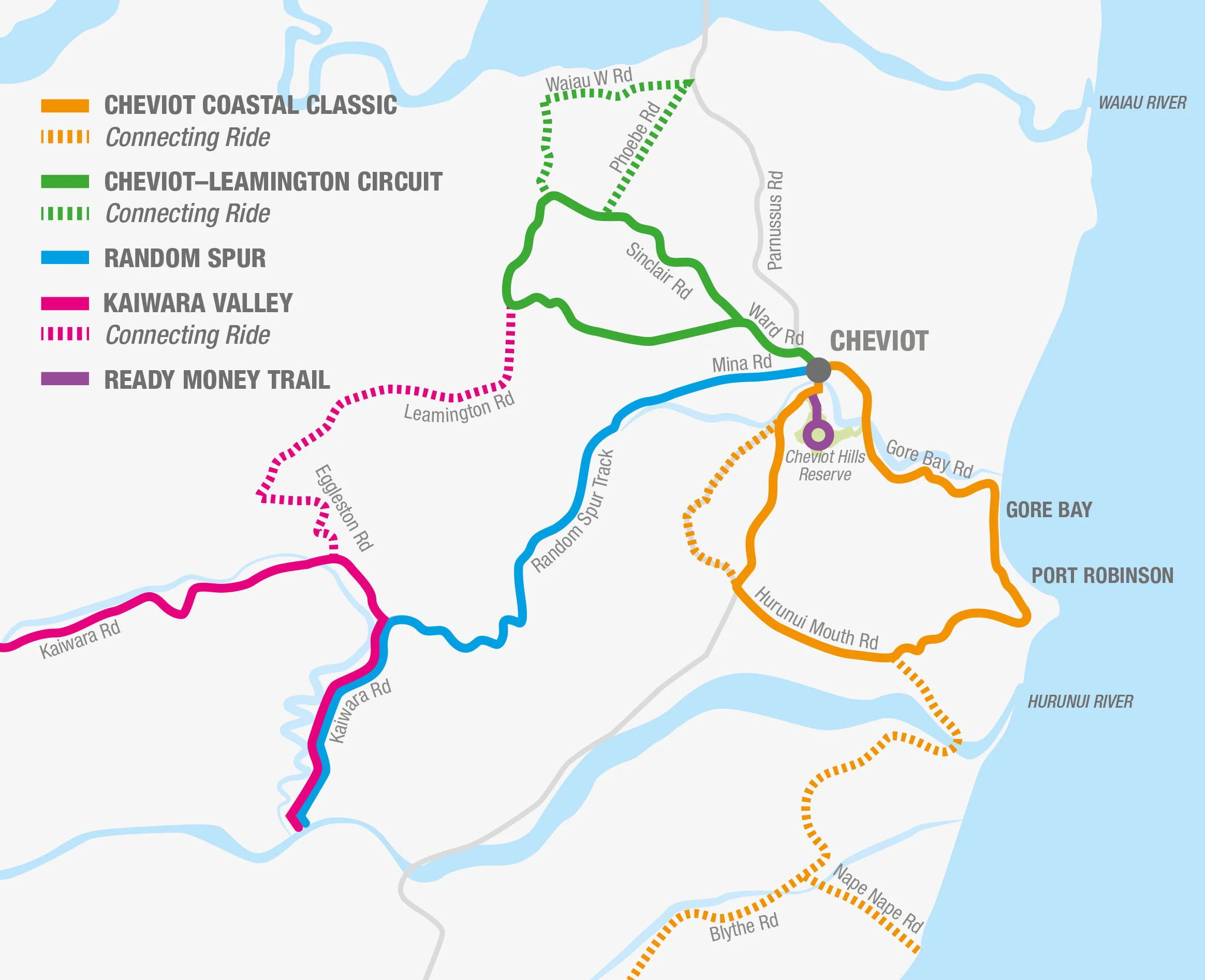This is a dramatic coastal circuit that leaves from Cheviot following the beautiful Gore Bay Road to the beach, where you can break for a well earn swim! The circuit also passes the famous Cathedral Cliffs – well worth a look. A couple of hill climbs gets the heart pumping.